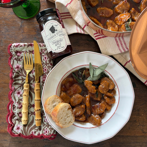 A blend of cinnamon, nutmeg, ginger and ground cloves, mixed with juicy apples and tart cranberries, this spread gives the ultimate feeling of fall, but we enjoy it year round! Made with Cape Cod Cranberries, it’s a local favorite and can be enjoyed in so many ways. We love it atop a wheel of triple cream brie with a mound of candied walnuts baked in a flakey puff pastry. Its seriously to die for!