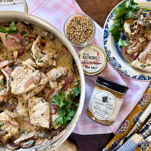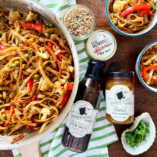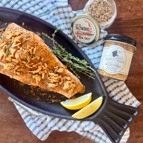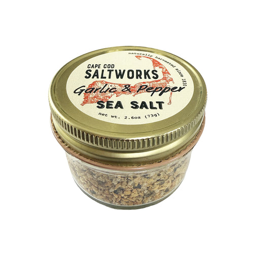 This classic blend of savory garlic and pepper is a popular seasoning for steaks, roasted vegetables and seafood. Made with locally harvested Cape Cod salt.